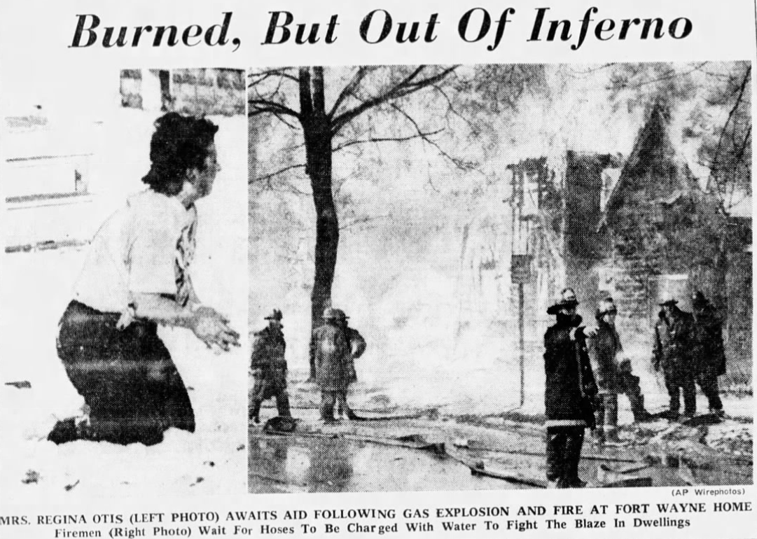 Did you ever hear of Regina Otis? A Fort Wayne housewife and mother to 14, suffered catastrophic injuries in 1966 when a gas line broke and blew up. She sued NIPSCO and a contracting firm's who weld had failed. She suffered burns to half her body, her doctor describing her flesh was charred.