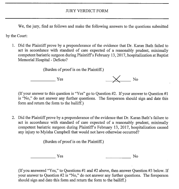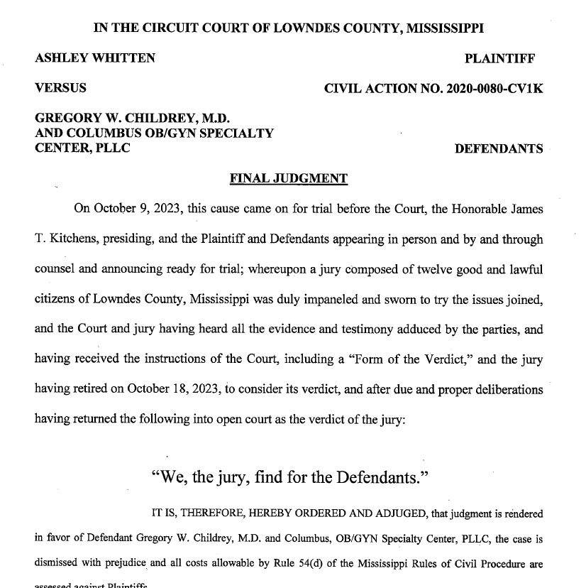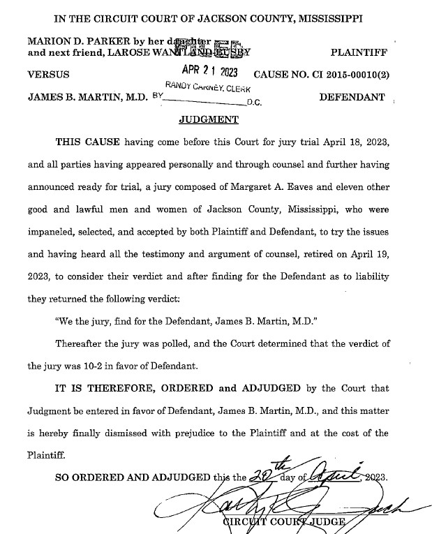 Surgical Med Mal Defense Verdict in Alcorn Circuit Court