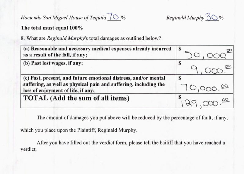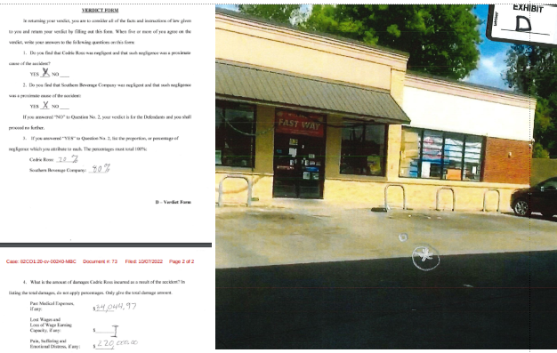 The jury returned a general verdict of $52,186 for the plaintiff on 9-29-22. That represented medicals of $12,186 ($24,000 were claimed) and $40,000 more for non-economic damages.