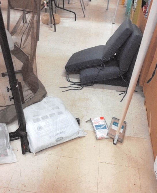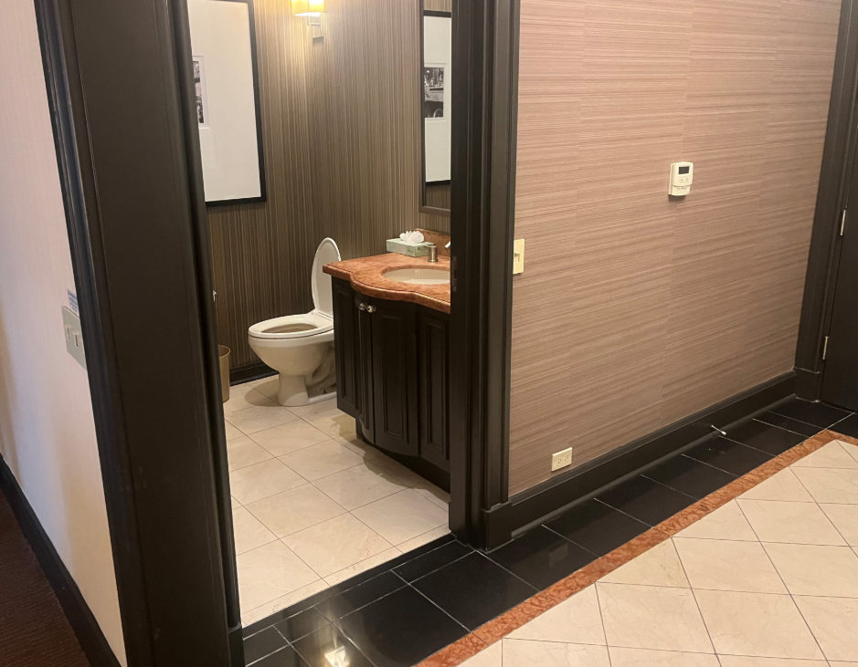 The scene of the half-bathroom that spilled onto the foyer of the room