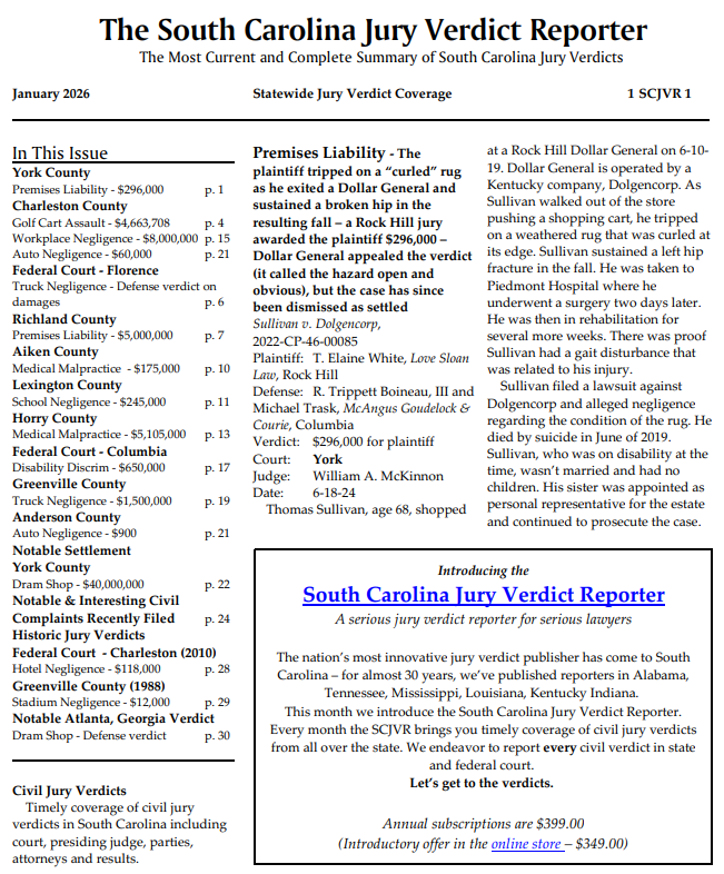 You can enter a subscription, buy a book, order jury verdict research, or purchase any of our other products. Do you have questions? Shoot us an e-mail at: info@juryverdicts.net.