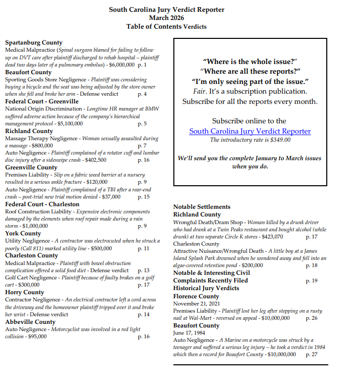 Shoot us an e-mail at: info@juryverdicts.net.