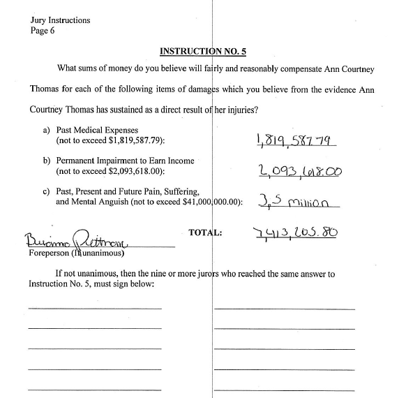 Verdict form filed in record $163,973,760 PI case in Louisville